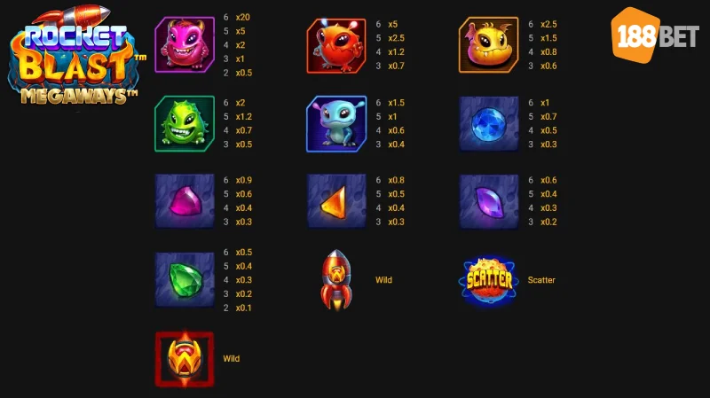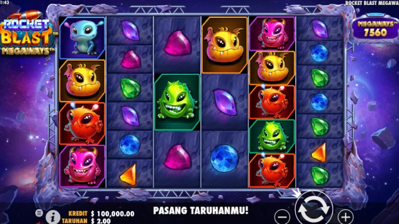 Tidak seperti namanya, Rocket Blast Megaways mempunyai tema permainan Planet lain di luar angkasa dengan mahluk alien berwarna warni yang menjadi ikon dari permainan ini.seperti namanya juga, permainan ini menganut mekanisme permainan Megaways yang berarti akan ada banyak sekali perkalian kemenangan yang bisa anda dapatkan, dan ada total 117,649 cara menang dari permainan ini.